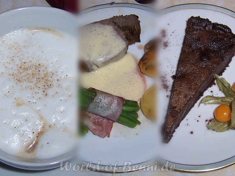 | Hauptgericht: | Chateaubriand, Sauce Bérnaise, Speckbohnen, Macaire-Kartoffeln |
